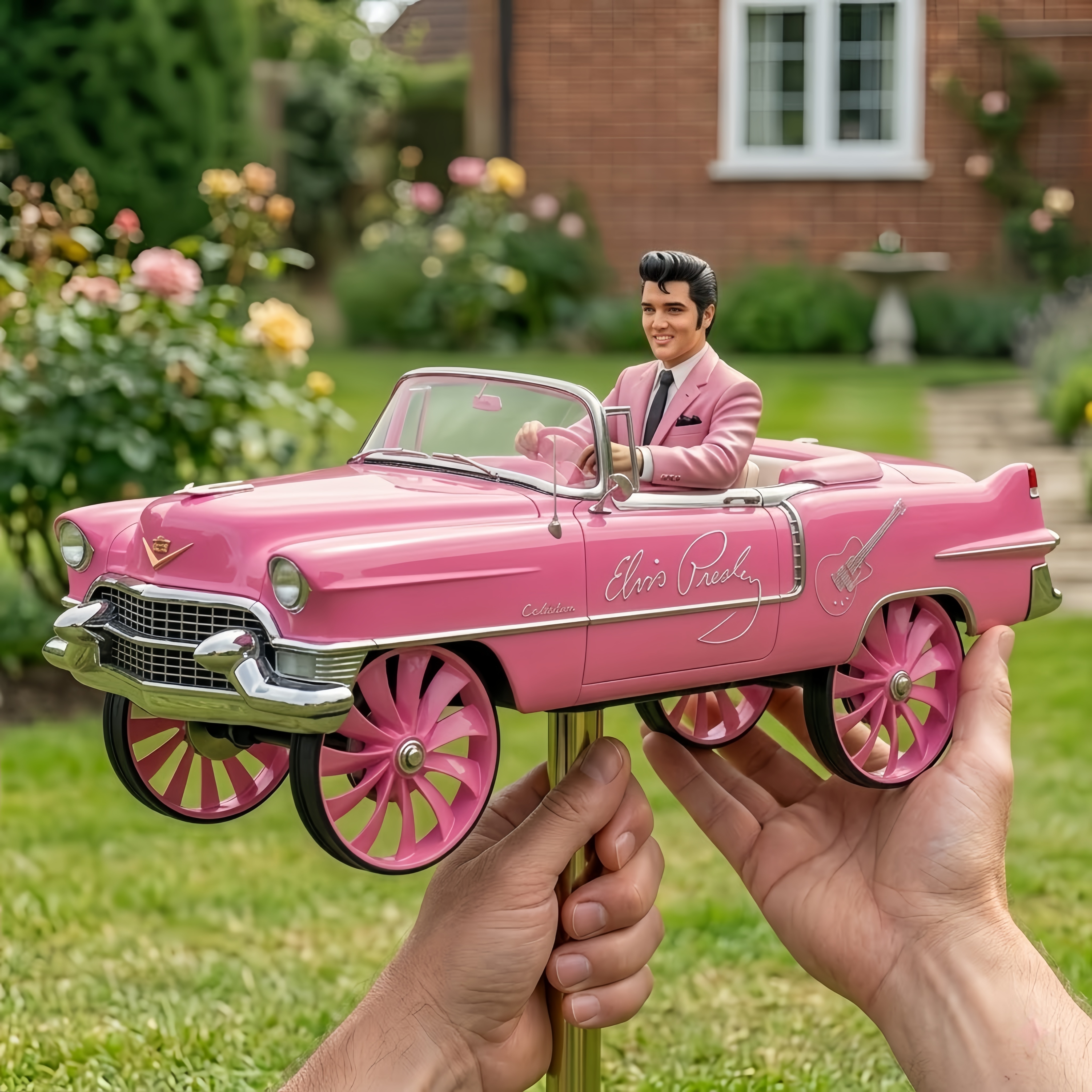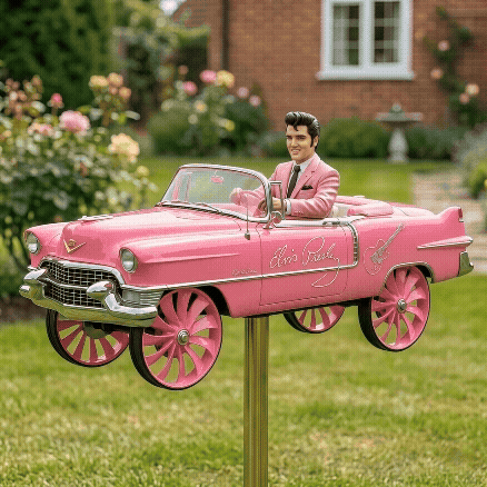 🎸❤️Roll into backyard legend with the ultimate rock ’n’ roll garden spinner — the dazzling Elvis Presley Pink Cadillac Wind Spinner, a show-stopping tribute to the King of Rock ’n’ Roll and his iconic 1955 Cadillac convertible!